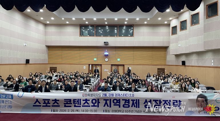 뉴스펀치 조평훈 기자 | 강원특별자치도는 2월 26일 강원대학교 60주년기념관 국제회의실에서 '스포츠 콘텐츠와 지역경제 성장 전략'을 주제로 2월 강원경제스터디를 개최했다.