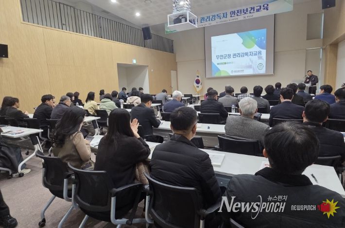 뉴스펀치 김용희 기자 | 무안군은 26일 무안군 보건소에서 현업부서 관리감독자 64명을 대상으로 중대재해 예방을 위한 안전보건교육을 실시했다고 밝혔다.