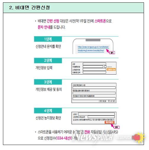 금년의 경우 신청 편의성 제고를 위해 스마트폰 등을 이용한 비대면 신청기한을 1개월에서 3개월로 확대했다. 신청일 기준으로 농업경영체 등록정보가 지난해와 변동이 없는 농업인은 비대면 간편신청이 가능하며, 별도의 서류 제출 없이 스마트폰이나 전화자동응답시스템(ARS)를 이용해 신청이 가능하다. 이들에게는 문자메시지(SMS) 등을 통해 3월 3일부터 신청을 안내할 예정이다. 또한, 간편신청이 불가한 농업인·법인은 인터넷에 접속하여 비대면 신청이 가능하도록 신청방식을 추가 도입하여 농업인들이 보다 편리하게 신청할 수 있게 했다.