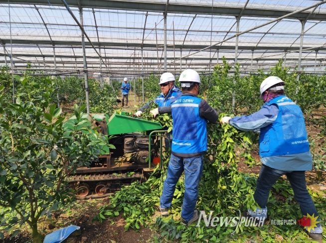 한편 제주농업기술센터는 지난해 123농가 42.8ha에 대해 감귤 전정 가지 파쇄 서비스를 지원한 바 있다.