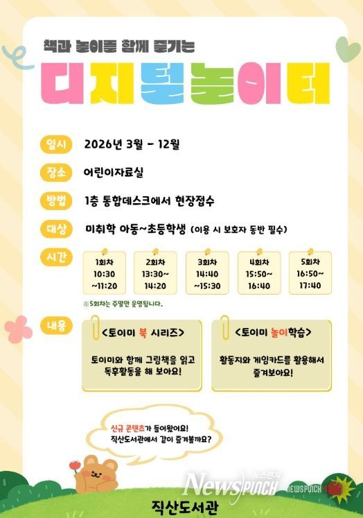 뉴스펀치 이현승 기자 | 천안시 직산도서관은 내달부터 디지털 놀이터를 확대 운영한다고 27일 밝혔다.