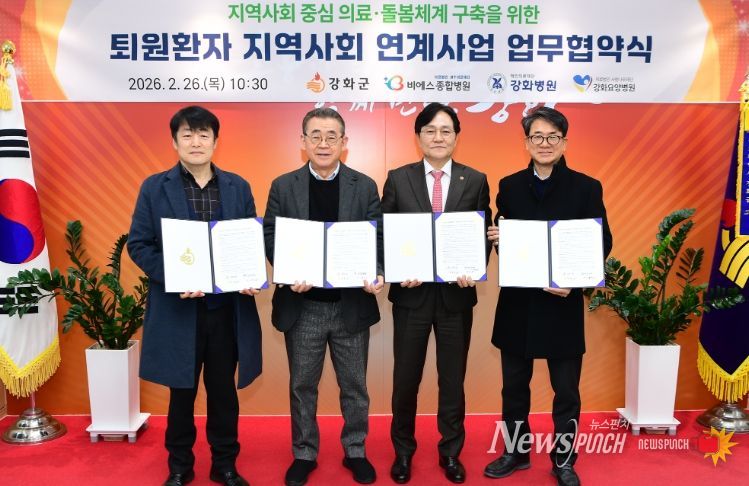 뉴스펀치 정홍균 기자 | 강화군은 지난 26일 만 65세 이상 병원 퇴원환자의 지역사회 복귀를 지원하기 위해 관내 의료기관과 ‘퇴원환자 지역사회 연계사업’ 업무협약을 체결했다.