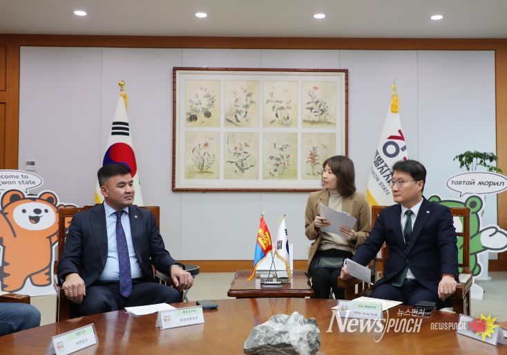 뉴스펀치 조평훈 기자 | 강원특별자치도는 2월 26일, 몽골 투무르추드르 튜브도지사가 교류 확대 방안 논의를 위해 도청을 방문해 여중협 행정부지사와 면담을 가졌다고 밝혔다.