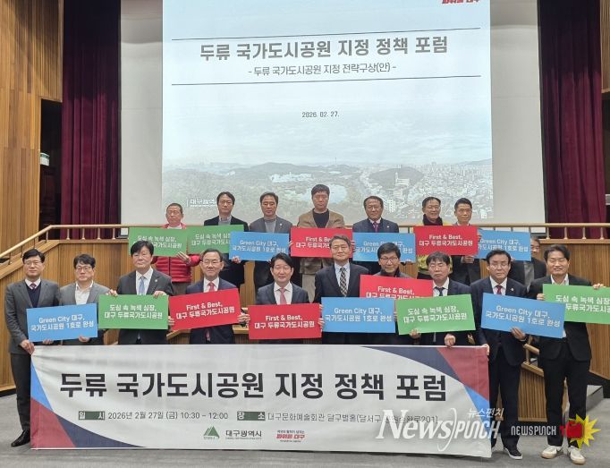 뉴스펀치 조평훈 기자 | 대구광역시는 2월 27일 두류공원 내 문화예술회관 달구벌홀에서 시민과 전문가 100여 명이 참석한 가운데 ‘두류공원 국가도시공원 지정 정책 포럼’을 개최했다.