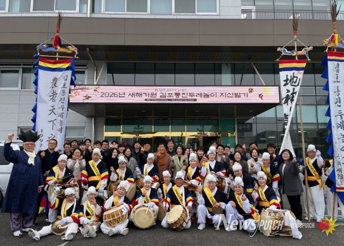뉴스펀치 박상훈 기자 | 김포교육지원청은 2026년 새해를 맞아 김포교육의 안녕과 번영을 기원하기 위해 지역의 김포통진두레놀이보존회와 함께 '2026년 새해기원 지신밟기' 행사를 진행했다.