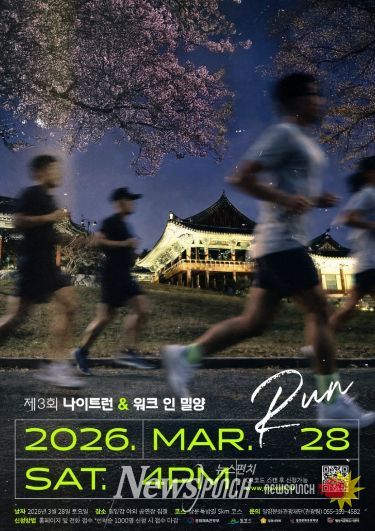 뉴스펀치 박세훈 기자 | 밀양문화관광재단은 오는 3월 28일 삼문동 밀양강 둔치 일원에서 벚꽃 철을 맞아 지역 야간관광 활성화를 위한 이색 러닝 축제 ‘제3회 나이트 런 앤 워크 인 밀양(Night Run & Walk in Miryang)’을 열고, 3월 22일까지 참가자를 모집한다.