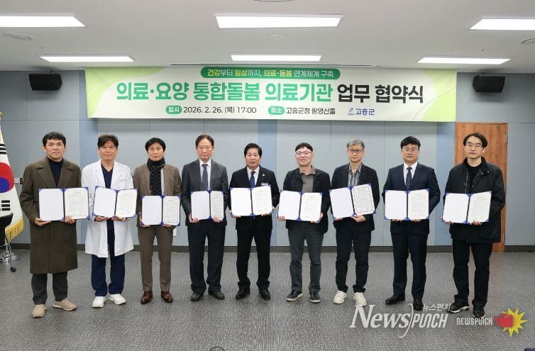 뉴스펀치 최영남 기자 | 고흥군은 지난 26일 군청 팔영산홀에서 지역 내 18개 의료기관과 함께 의료·돌봄 연계체계 구축을 위한 통합돌봄사업 의료분야 업무협약을 체결했다.