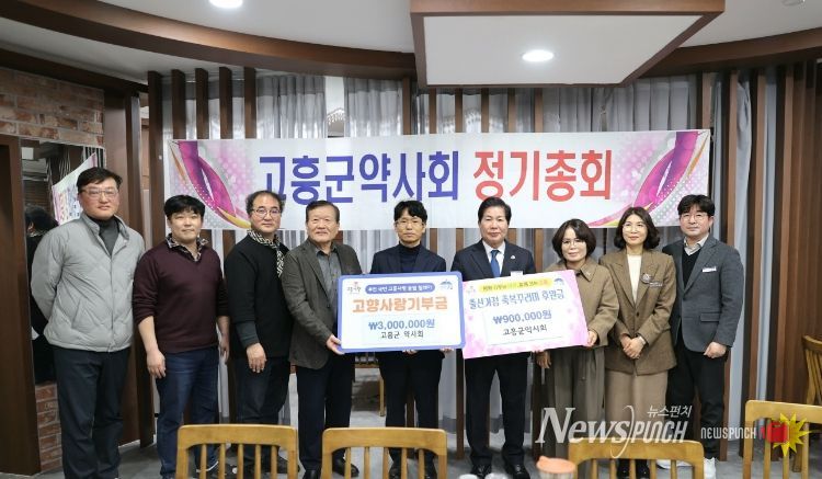 뉴스펀치 김용희 기자 | 고흥군은 지난 26일 개최된 고흥군 약사회 정기총회에서 약사회로부터 지역 미래세대를 위한 고향사랑기부금을 전달받았다고 밝혔다.