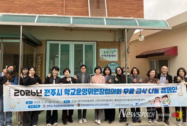 뉴스펀치 최영남 기자 | 전북특별자치도전주교육지원청과 전주시 학교운영위원장협의회(회장 윤미연)는 27일 지역아동센터 학생을 위한 ‘2026년 무료 급식 나눔 캠페인’을 진행하고 정성껏 준비한 도시락을 직접 전달했다.