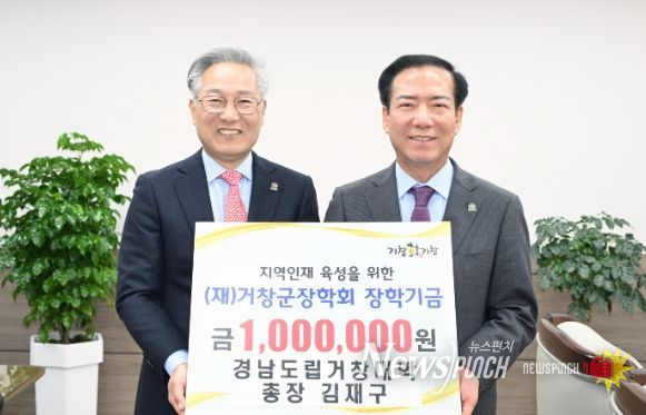 뉴스펀치 박세훈 기자 | (재)거창군장학회는 27일 경남도립거창대학 김재구 총장이 지역인재 양성을 위한 장학금 100만 원을 기탁 했다고 밝혔다.