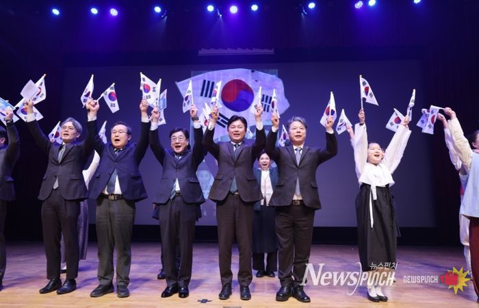 독립정신을 기리는 이번 기념식은 진스태권도 공연단의 기품 있는 태권도 시범과 퓨전 국악팀 ‘윤슬’의 전통적 색채를 담은 식전 공연으로 막을 올렸다. 이어 누베스어린이합창단이 애국가와 ‘대한독립만세’ 동요, 3·1절 노래를 합창해 경건한 분위기를 더했다.