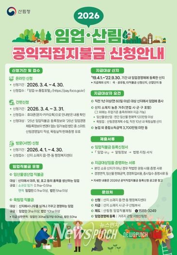 뉴스펀치 박세훈 기자 | 경상북도는 농업인의 소득 안정을 지원하고, 농업·농촌의 공익적 기능을 강화하기 위해 2026년도 기본형 공익직불금 신청을 3월 1일부터 5월 31일까지 접수한다고 밝혔다.