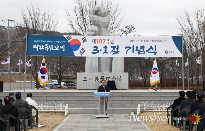 뉴스펀치 박세훈 기자 | 영양군은 제107주년 3·1절을 맞아 청기면 망미공원에서 기념식을 거행하고, 독립선열들의 숭고한 희생정신과 3·1운동의 역사적 의미를 되새겼다.