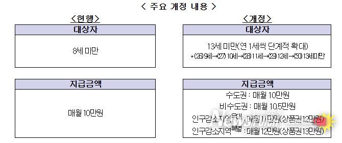 1. 아동수당 지급 대상 확대