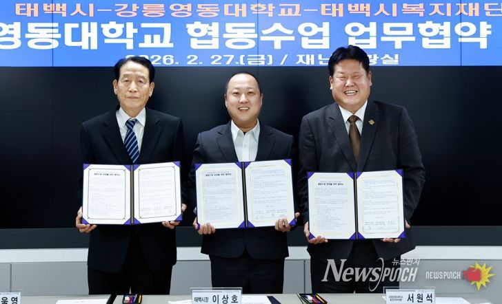 뉴스펀치 조평훈 기자 | 태백시는 2월 27일 강릉영동대학교, 태백시복지재단과 함께 지역 인재 양성과 현장 기반 교육 강화를 위한 협동수업 운영 업무협약을 체결했다고 밝혔다.