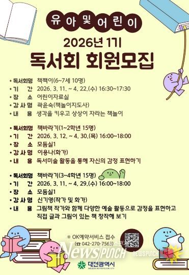뉴스펀치 이현승 기자 | 동대전도서관은 2026년 유아 및 어린이독서회(1기) 회원을 모집한다.