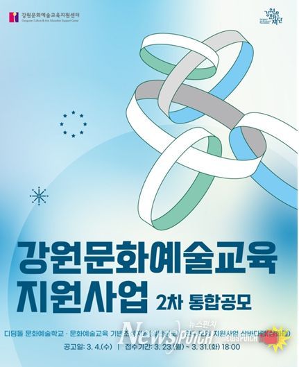 뉴스펀치 조평훈 기자 | 강원문화재단은 문화예술교육 활성화와 도민들의 문화예술교육 향유 기회 확대를 위한 '2026년 강원문화예술교육 지원사업 2차 통합 공모'를 진행한다.