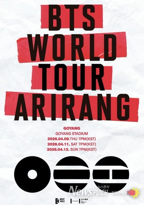 뉴스펀치 박상훈 기자 | 전 세계의 이목이 집중된 방탄소년단의 월드투어 ‘BTS WORLD TOUR ‘ARIRANG’’가 오는 4월 경기도 고양시에서 그 화려한 서막을 알린다.