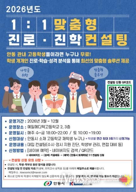 뉴스펀치 박세훈 기자 | 안동시는 오는 3월부터 지역 고등학생을 대상으로 2026년도 1대1 맞춤형 진로․진학 컨설팅을 본격 시행한다고 밝혔다.