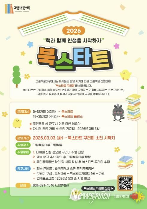 뉴스펀치 박상훈 기자 | 군포 그림책꿈마루는 영아의 첫 책 경험을 지원하는 ‘북스타트(Bookstart)’ 꾸러미 제공 사업을 진행하기로 하여 2026년 3월부터 신청자 접수를 받는다.