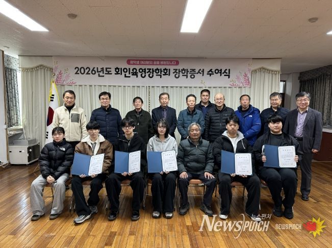 뉴스펀치 이현승 기자 | 보은군 회인육영장학회(이사장 김진완)는 3일 회인면행정복지센터에서 장학생 및 학부모, 장학회 이사 등이 참석한 가운데 2026년도 장학증서 수여식을 가졌다.