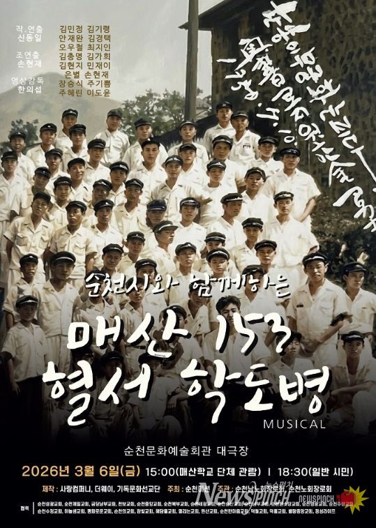 뉴스펀치 김용희 기자 | 순천시는 6.25전쟁 당시 나라를 지키기 위해 펜 대신 총을 들고 전쟁에 나섰던 지역 학도병들의 숭고한 희생을 기리는 창작 뮤지컬 공연이 오는 6일 오후 6시 30분 순천문화예술회관 대극장에서 열린다고 밝혔다.