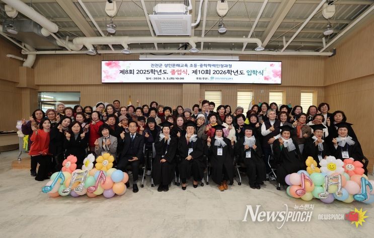 뉴스펀치 이현승 기자 | 충북 진천군 평생학습센터는 3일 성인문해교육 초등·중학 학력인정과정의 2025학년도 졸업식과 2026학년도 입학식을 함께 열고 배움의 결실과 새로운 출발을 축하했다.