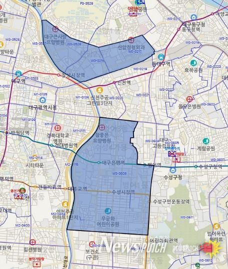 이번 수계 조정으로 동구 신암 2동, 수성구 수성 1·2·3·4가동 전역, 그리고 동구 신암3동, 북구 대현동, 수성구 범어 1·3동, 중동, 황금 2동 일부 지역 3만 3천 세대에서 흐린 물이 나올 수 있다.