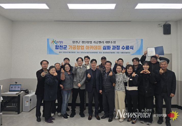 뉴스펀치 박세훈 기자 | 합천군은 3월 3일 먹거리통합지원센터 회의실에서 2025년 농산물가공창업 아카데미 교육 심화과정 수료식을 개최했다.