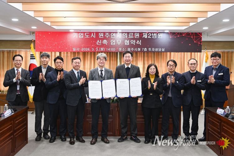 뉴스펀치 조평훈 기자 | 원주시는 3일 오후 2시 시청 7층 투자상담실에서 원주연세의료원과 ‘기업도시 원주연세의료원 제2병원 건립 사업’의 성공적인 추진을 위한 업무협약을 체결했다.