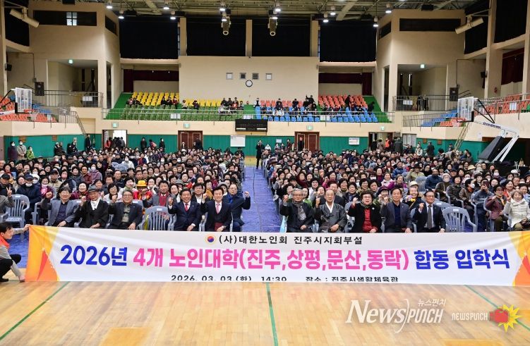뉴스펀치 박세훈 기자 | (사)대한노인회 진주시지회장(회장 최동권)은 3월 3일 진주시생활체육관에서 부설 노인대학 4개소 합동 입학식을 성황리에 개최했다.