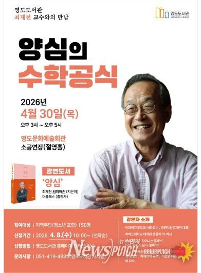 강연 참여 신청은 4월 8일 오전 10시부터 영도도서관 홈페이지를 통해 온라인으로 선착순 접수하며, 자세한 내용은 영도도서관 문의 또는 홈페이지 공지사항을 통해 확인할 수 있다.