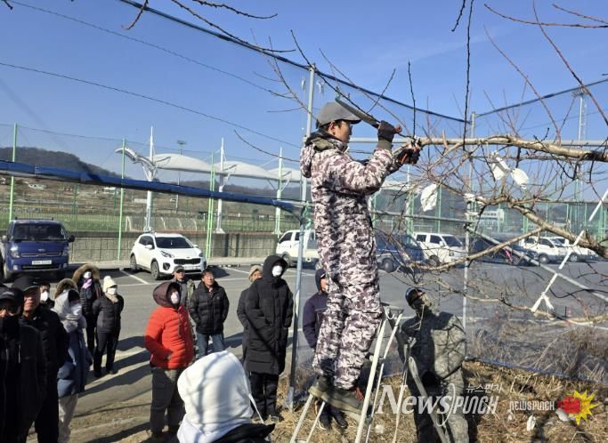 뉴스펀치 이현승 기자 | 충주시농업기술센터가 복숭아 재배농가의 전정기술 향상을 위해 실시한 정지전정 현장교육을 최근 성황리에 마무리했다고 4일 밝혔다.