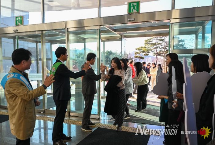 지난 3일 청양문예회관에서 열린 이날 행사에는 군수와 각 부서장들이 직접 참여해 입장하는 직원들과 하이파이브를 나누며 서로 손을 맞대는 상징적 퍼포먼스를 통해 일상 속 청렴 실천 의지를 다졌다.