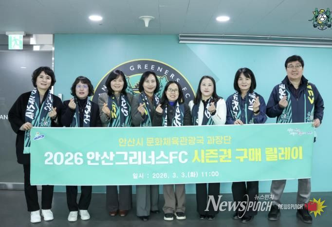 뉴스펀치 박상훈 기자 | 안산시는 지난 3일 문화체육관광국 과장단이 안산그리너스FC(구단주 이민근) 2026시즌 시즌권 구매 릴레이에 동참하며 시민구단 응원 분위기 확산에 힘을 보탰다고 4일 밝혔다.