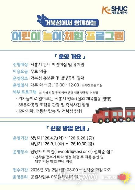 이번 프로그램은 기존 운영성과와 만족도 조사 결과를 반영해 실내·야외 활동을 연계한 순환형 체험 프로그램으로 구성됐다. 단순 탑승형 콘텐츠 제공에서 벗어나 놀이와 학습 요소를 결합해 어린이들이 시흥의 지역 명소인 거북섬을 자연스럽게 이해하고 체험할 수 있도록 교육적 기능을 강화했다.