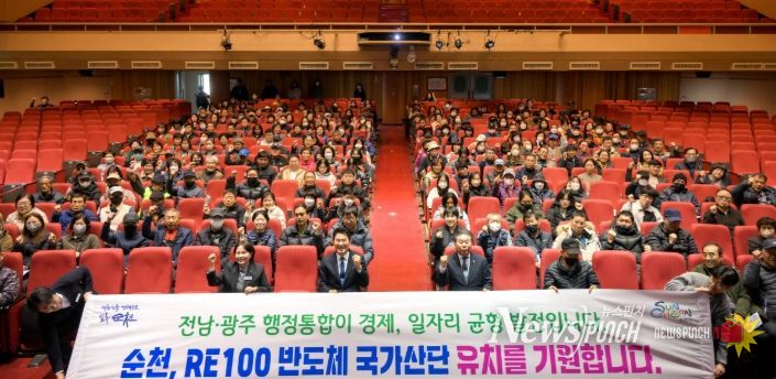 한편, 안전사고 예방교육에서는 미래 경쟁력과 지속 가능한 성장 기반을 위한 순천시 RE100 반도체 국가산단 유치 및 전남․광주 행정통합을 기원하는 퍼포먼스도 진행됐다.