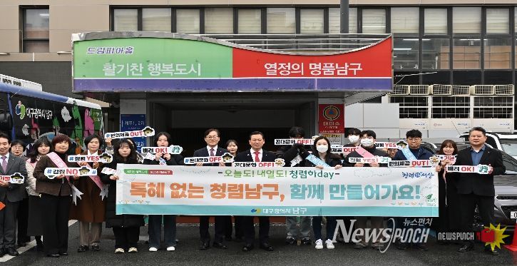 뉴스펀치 조평훈 기자 | 대구 남구는 지난 3일 ‘특혜 근절 및 청렴 문화 확산’을 위한 청렴 캠페인을 실시했다고 밝혔다.