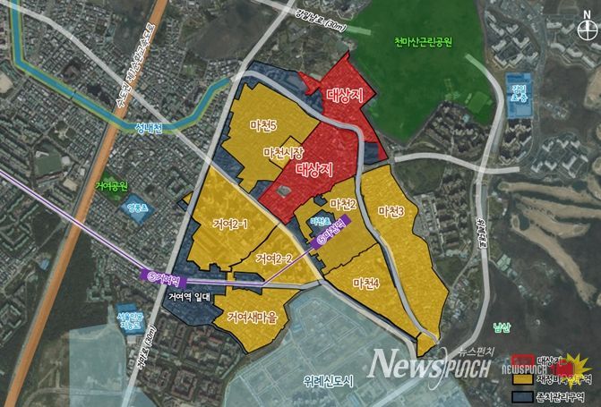 거여·마천재정비촉진지구 내 마천2,3,4,5구역, 거여새마을구역 또한 정상 추진 중으로, 성내천 복원사업과 연계한 공원·산책로 조성 등 친수 주거단지로 조성이 예정되어 주거환경 개선이 기대된다.