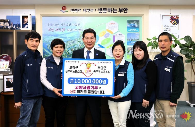 뉴스펀치 정홍균 기자 | 부안군과 고창군 공무직 노동조합이 고향사랑기부제를 통해 상호기부를 실천하며 지역 간 연대의 의미를 더했다.