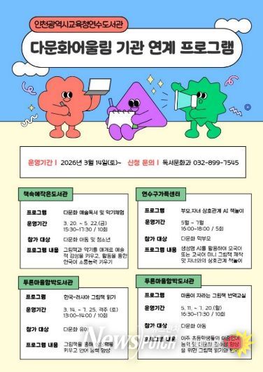 뉴스펀치 정홍균 기자 | 인천광역시교육청연수도서관은 3월 14일부터 7월 25일까지, 지역 내 유관기관과 연계하여 ‘다문화 어울림’ 프로그램을 운영한다.