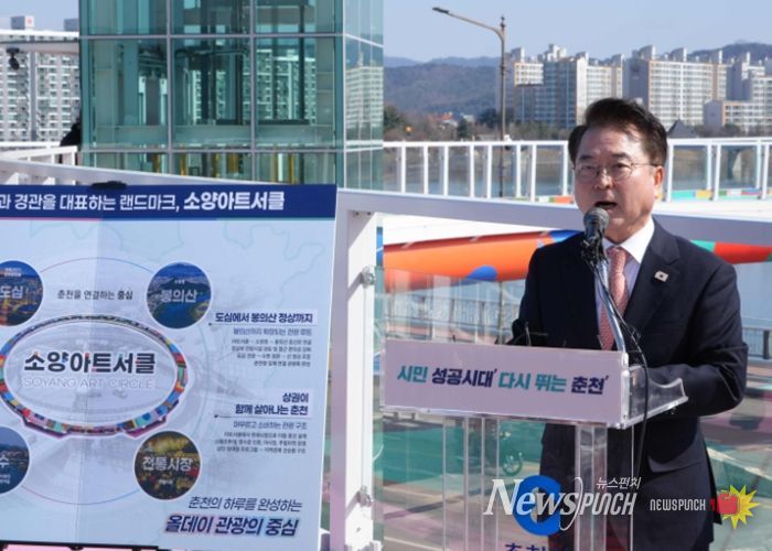 뉴스펀치 조평훈 기자 | 춘천시가 소양2교 앞 호반사거리에 조성한 ‘소양아트서클’을 준공하고 춘천 도심의 새로운 관광 랜드마크로 본격 운영에 들어간다.