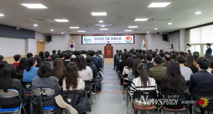뉴스펀치 박세훈 기자 | 합천군은 지난 4일 군청 대회의실에서 공직자 100여 명이 참석한 가운데 2026년 3월 정례 조회를 개최했다.