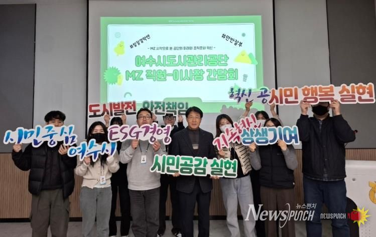 뉴스펀치 김용희 기자 | 여수시도시관리공단은 지난 2월 26일 MZ세대 직원과 이사장이 함께하는 소통 간담회 개최를 통해 세대 간 이해 증진과 조직문화 혁신을 위한 뜻깊은 시간을 가졌다고 밝혔다.