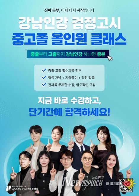 뉴스펀치 박상훈 기자 | 꿈이 모이는 도시, 미래를 그리는 강남구가 검정고시 수험생을 위한 온라인 교육 콘텐츠 ‘강남인강 검정고시 올인원 클래스’를 개강한다. 고졸 과정은 3월 9일부터 강남인강 홈페이지에서 수강할 수 있다.