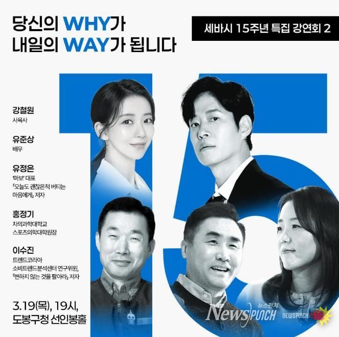 뉴스펀치 박상훈 기자 | 서울 도봉구가 3월 19일 오후 7시 도봉구청 2층 선인봉홀에서 세바시(세상을 바꾸는 시간 15분) 15주년 2차 특집 강연회가 열린다고 밝혔다.