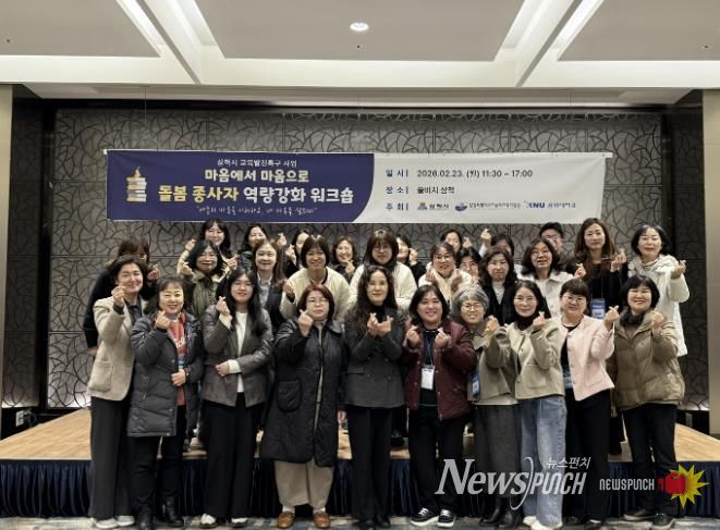 뉴스펀치 조평훈 기자 | 삼척시는 교육발전특구 사업의 일환으로 2월 23일 쏠비치 삼척에서 관내 늘봄학교전담사, 늘봄지원실장 및 유관기관 종사자 32명을 대상으로'돌봄 종사자 역량 강화 워크숍'을 개최했다.