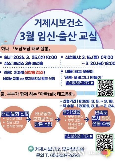 뉴스펀치 박세훈 기자 | 거제시는 임신·출산 친화적 환경을 조성하고 임산부의 건강한 출산 준비를 지원하기 위해 2026년 '도담도담 임신·출산교실' 운영을 시작한다.