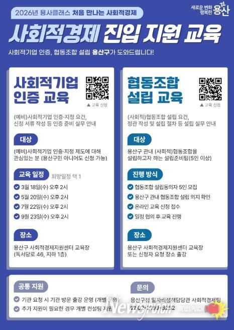 박희영 용산구청장은 “사회적경제에 대한 관심은 높지만 절차와 준비 과정에 대한 정보 부족으로 진입을 망설이는 경우가 많다”며 “용사클래스를 통해 구민이 사회적경제를 보다 쉽게 이해하고, 실제 설립과 인증으로 이어질 수 있도록 체계적인 지원을 이어가겠다”고 말했다.