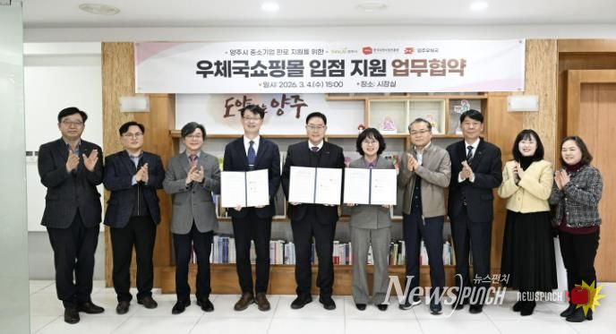 뉴스펀치 박상훈 기자 | 양주시가 지난 4일 한국우편사업진흥원, 양주우체국과 함께 관내 중소기업의 온라인 유통망 확대를 위한 ‘우체국 입점 지원 업무협약’을 체결했다.